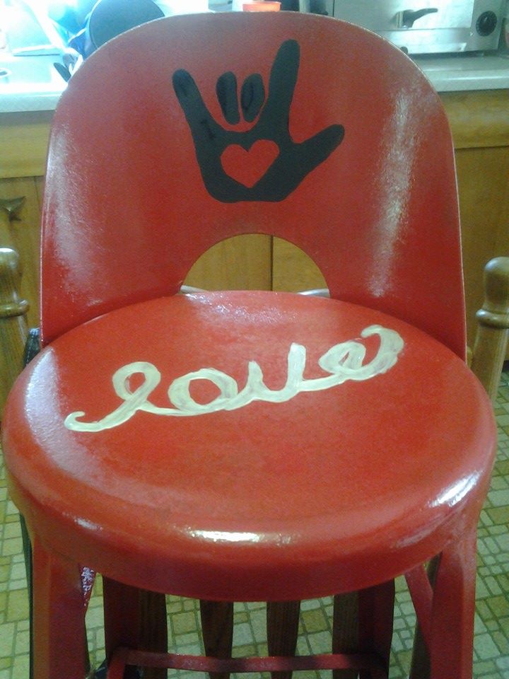 Today I needed to get the couple designs I had in my head to the chair. I wanted something to symbolize hearing. This word hearing or not hearing has changed so much of my life that I needed to get that symbol on my creation. My son and I have been doing the I Love You in sign language to each other since he was about 2 years old and he didn’t talk yet. Still today when I dropped him off at summer school he did this sign to me when going into school. It is important to me and my heart. I thought of adding the heart in the hand since the love of my family is in my heart.