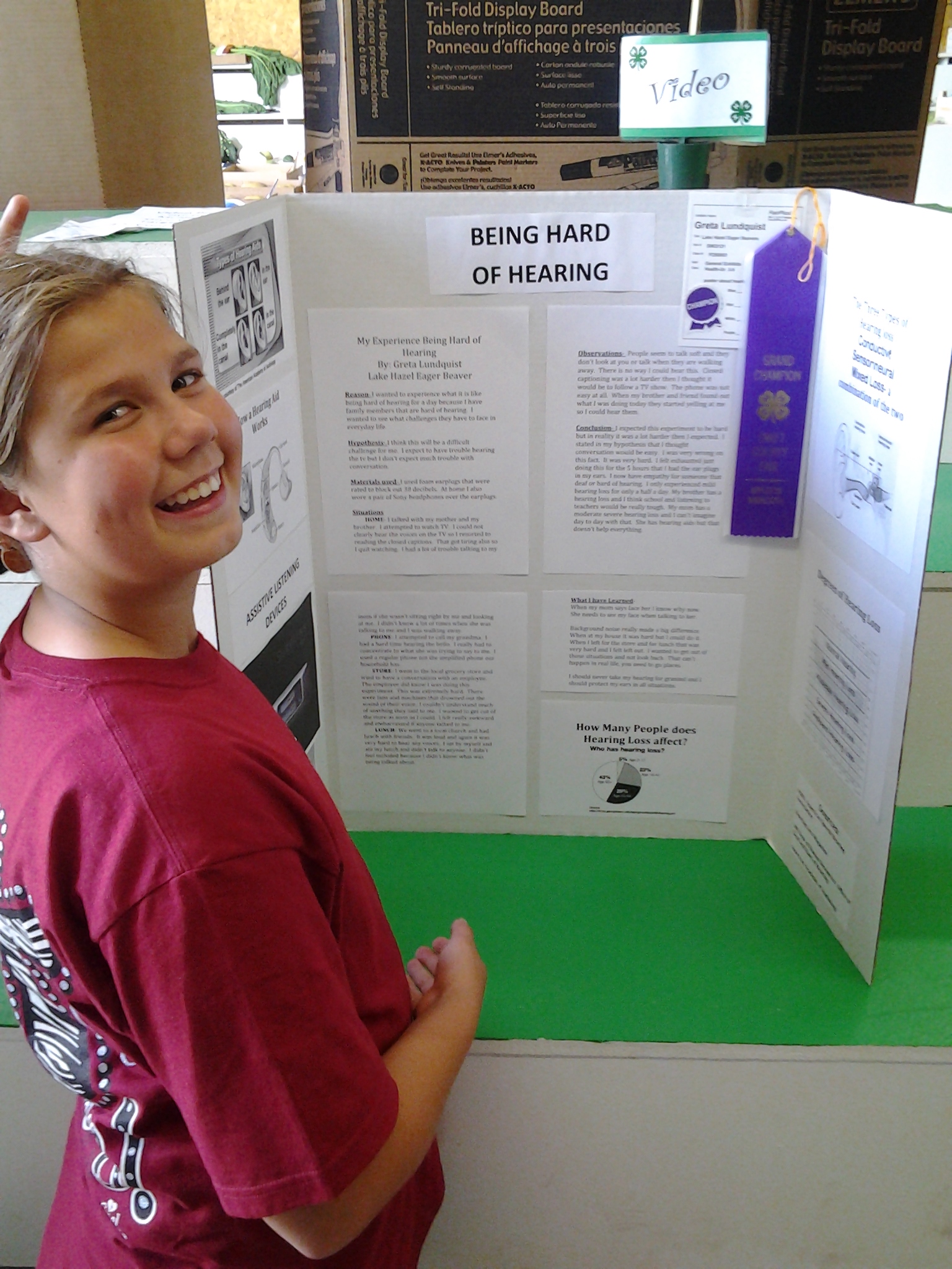 My daughter, Greta, I have bragged up in the past. She is an amazing girl and I love her with all my heart. Does she have tween attitude and eyes that roll…you bet, but she is a wonderful daughter and so proud of her. This past county fair Greta won two grand champion ribbons for a couple projects that deal with hearing loss. She was interviewed this past week and this is article that was written. I am so proud of this COOL KID.