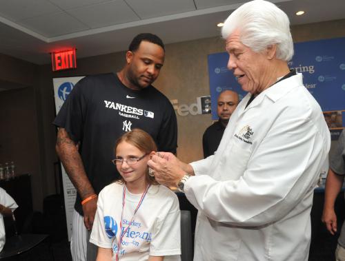 A few moments later he called my name and I went over to him. I felt a little star shocked. Looking ahead of me there were pictures of Bill meeting Mother Teresa and the Pope. I am just amazed. They ended up changing the case on the right aid so a new battery door. On the left aid they polished down the ear mold and put some new clear coat on it. He fitted them and tested them. He then turned to Chad and talked to both of us of what we should do if there is feedback. Sometimes there may be some that Chad can hear and I can’t and what he should tell me. He asked where we were from, general chit chat that was just really nice. I kept thinking about my daughter, Greta. She would be so jealous. She got to meet Bill’s wife, Tani, last summer and made a lasting impression in her life. Meeting Bill could have only made it better.