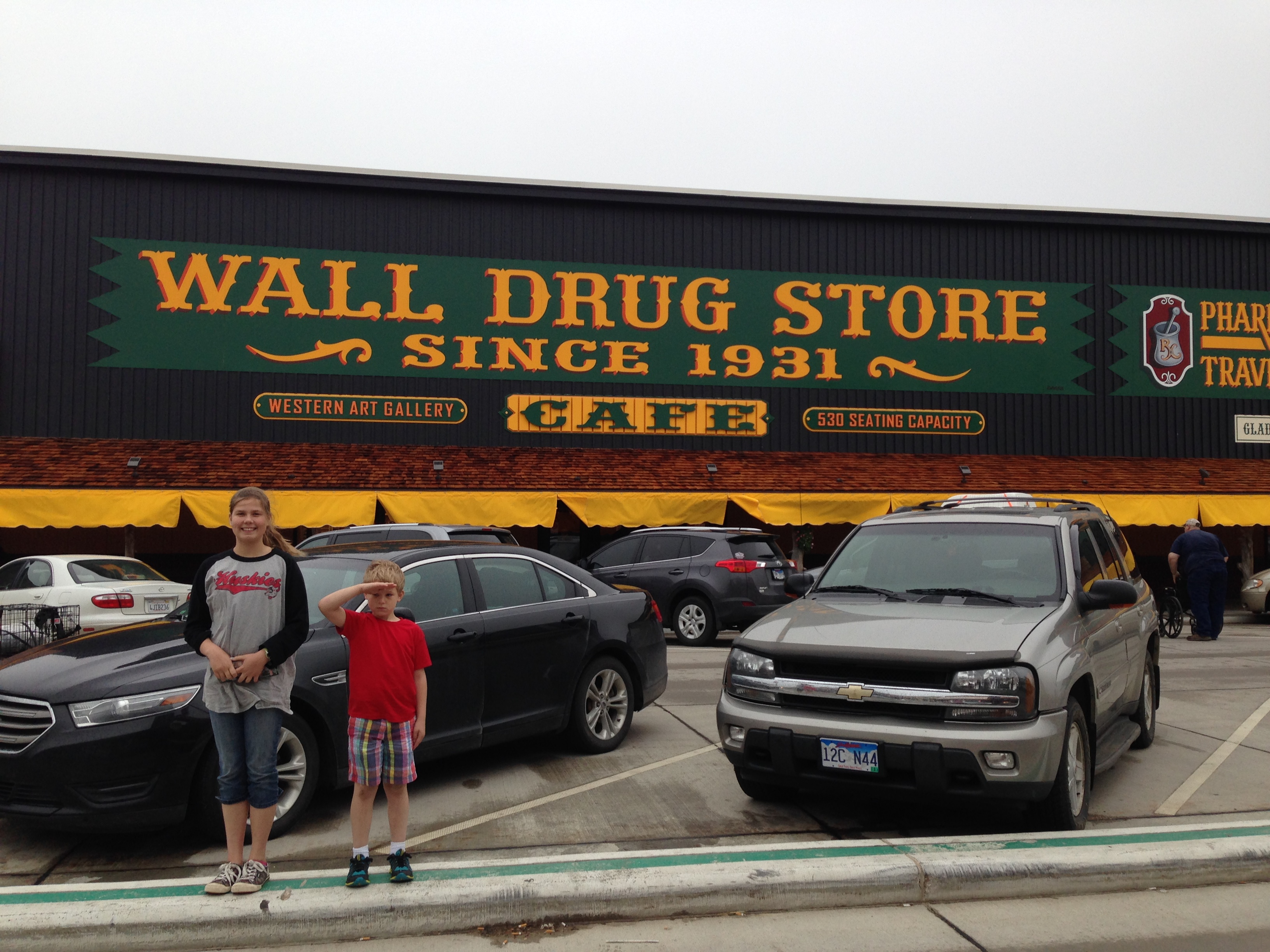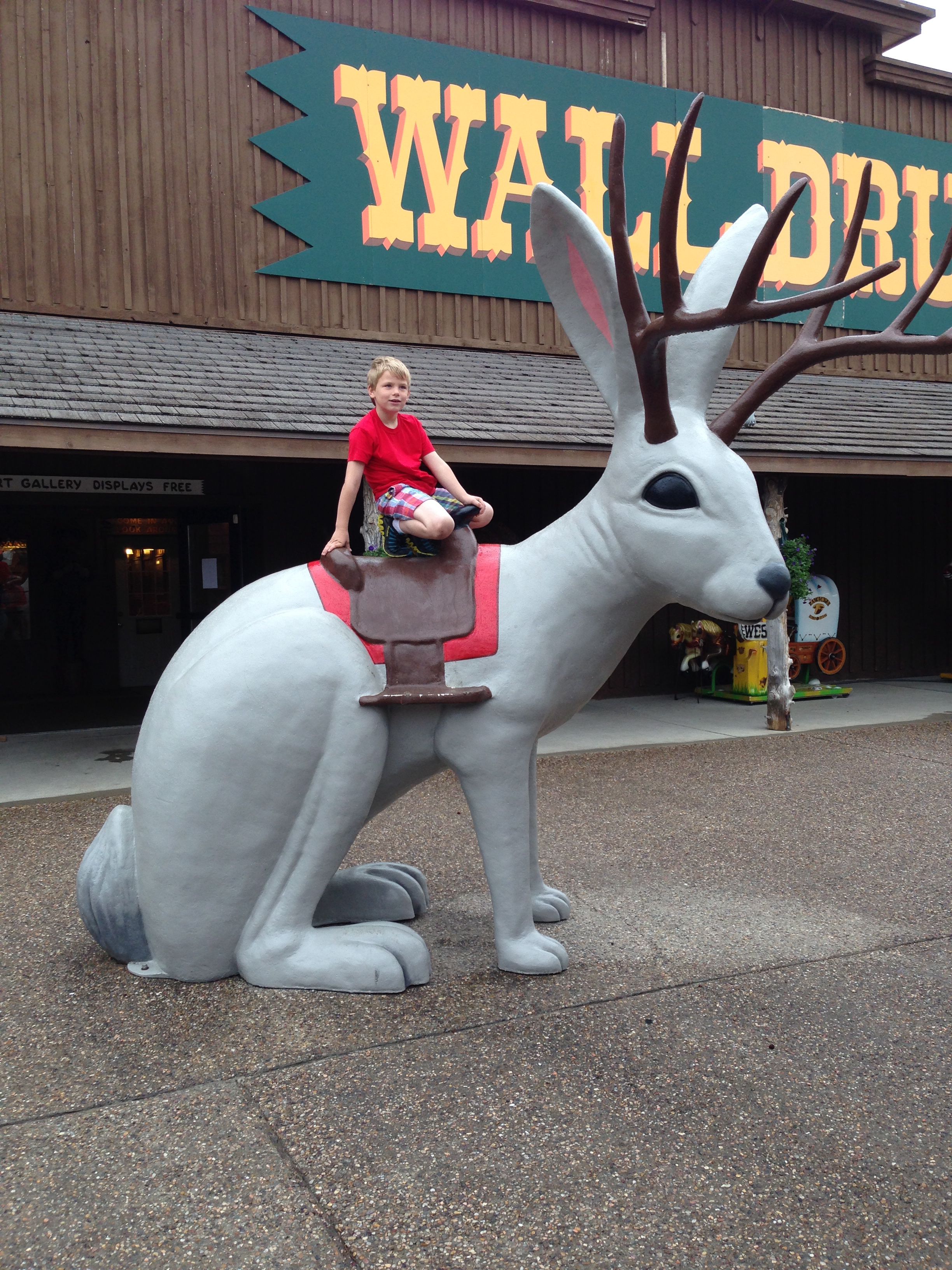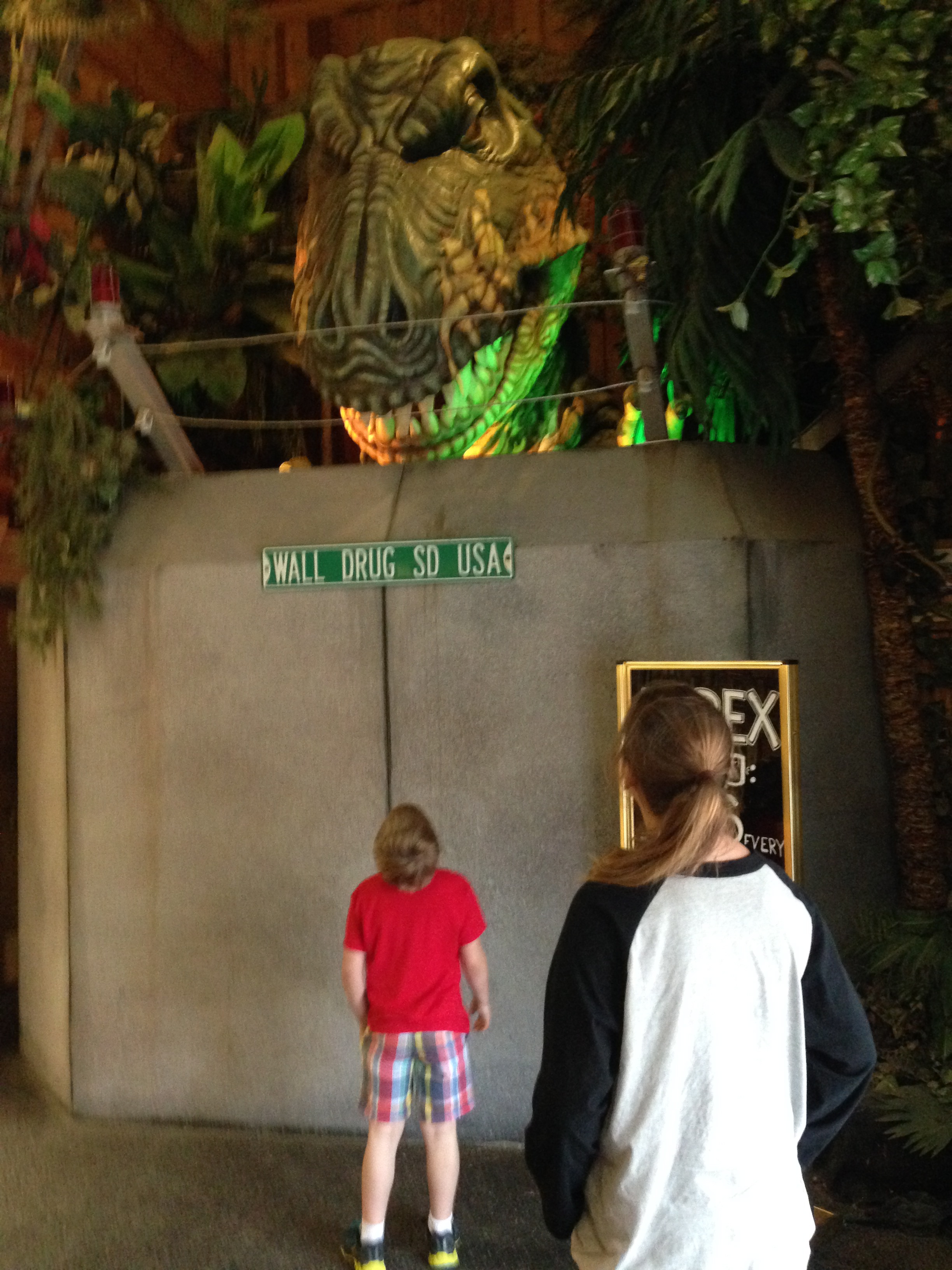 Day 2 started with rain and a lot of rain. Packing the van and the pod is not fun in pouring rain but my husband stood on the step stool and just did it. We headed west towards Murdo. That was our first stop. We had decided that we wanted to see and experience 1880 town. When we pulled into the town it was raining and closed. Oh Well we will hit 1880 town later in the trip. So we kept plugging along in the rain towards Wall, the magical place of Wall Drug. We got to Wall Drug and it wasn’t very busy and it was only 45 degrees. Very cool but the rain had stopped. The kids LOVED Wall Drug and I have to say I enjoyed it also. It was a fun place to see and explore. I learned later I missed half of Wall Drug but no worries we stopped again on the way home.