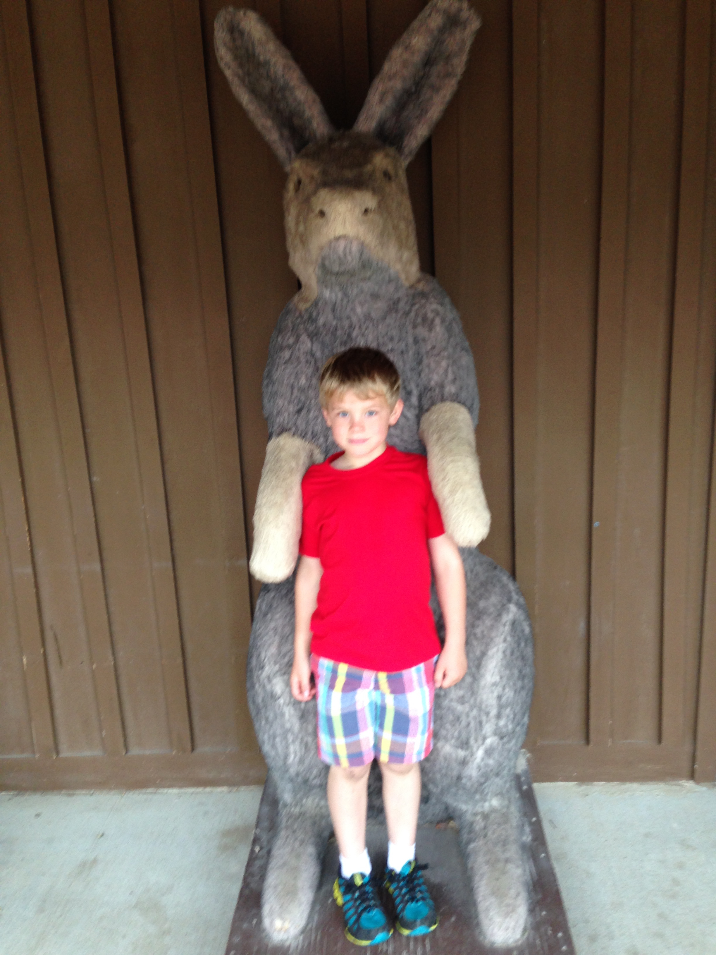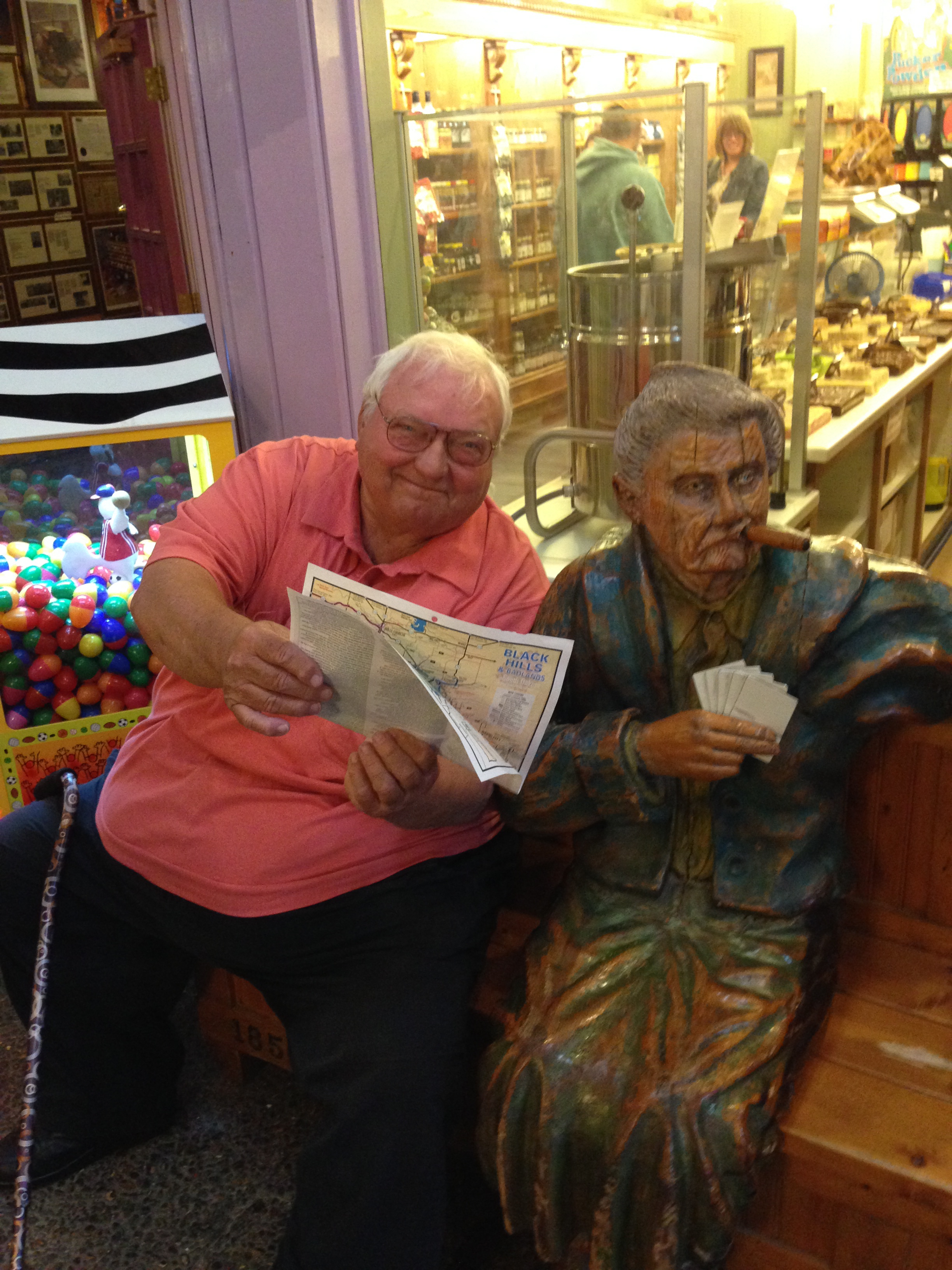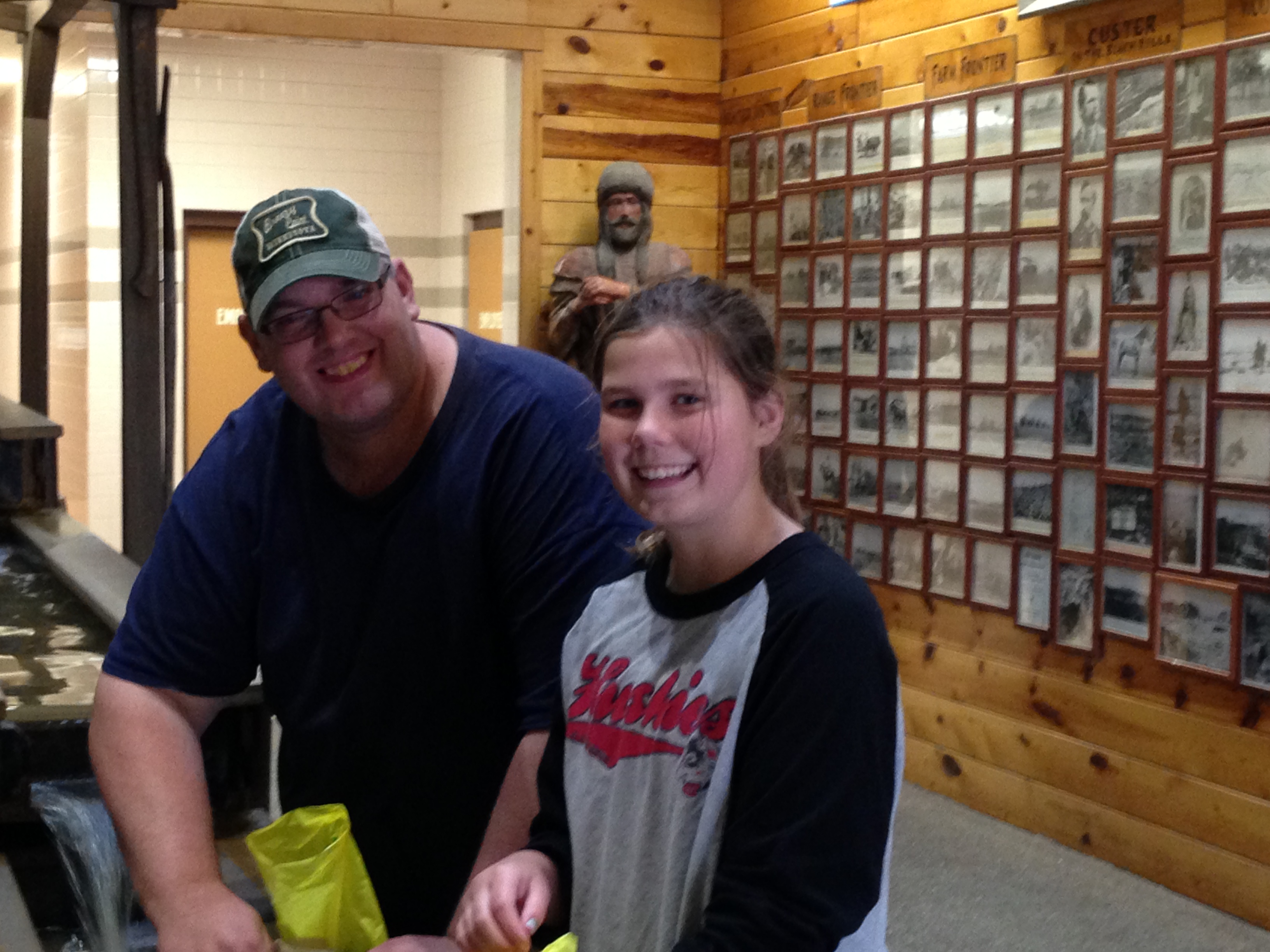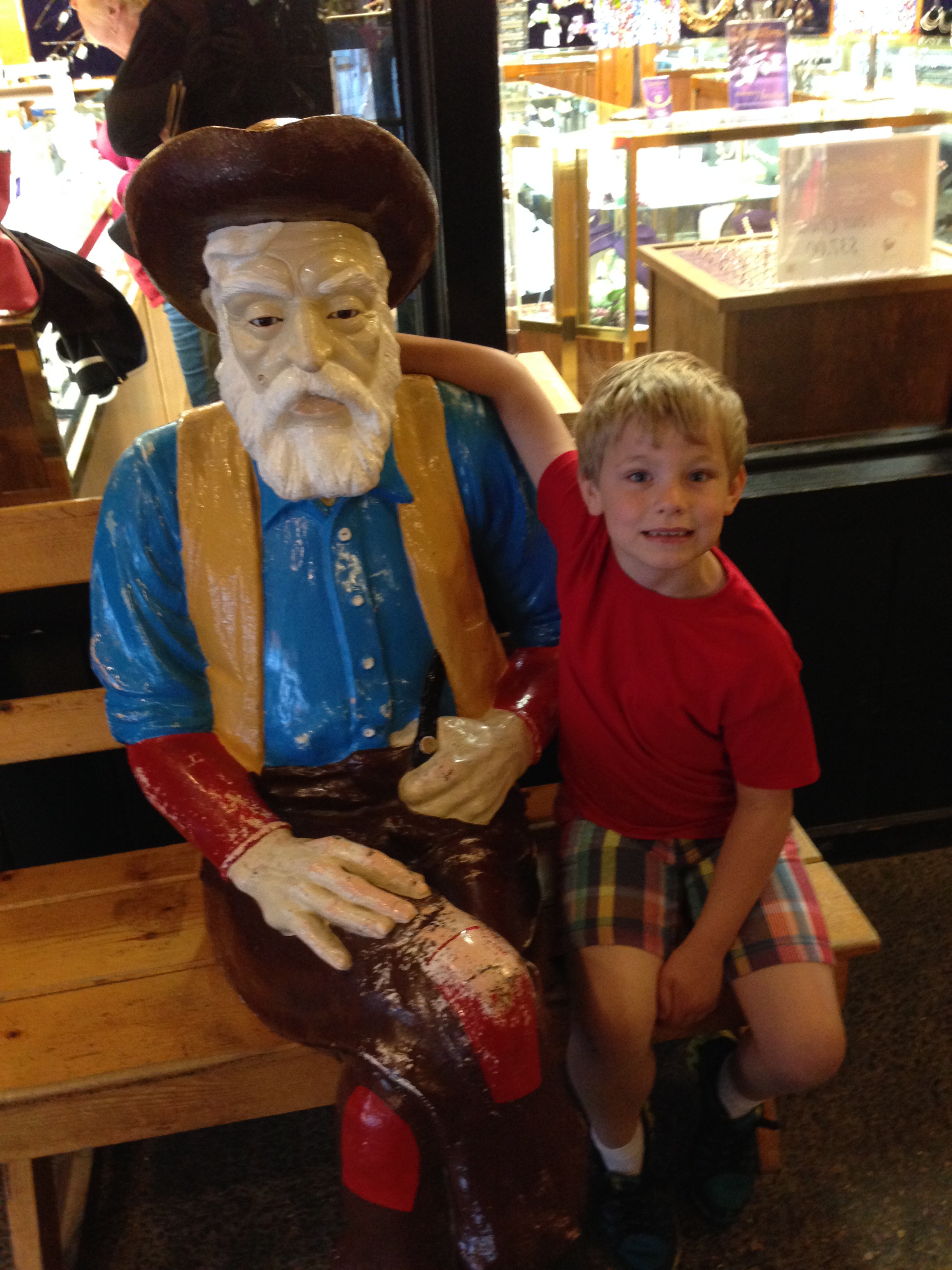 We had a lot of fun in Wall Drug. We of course had to take a picture with about everything. We had some free water, and panned for gemstones. Greta and Chad panned in a little stream and found some emeralds and a Ruby they were told. Henry and I went into a very dark little mine and had headlamps and looked for polished rocks and fools gold. It was fun and a little special time with each child. While shopping Henry bought an ultimate grab bag. For $10 he got tons of stuff. Everything from a Sturgis hat to shot glasses and t-shirts. He got well over $100 worth of items in that bag. I think that is a highlight for Henry looking at everything in that grab bag it was nuts.