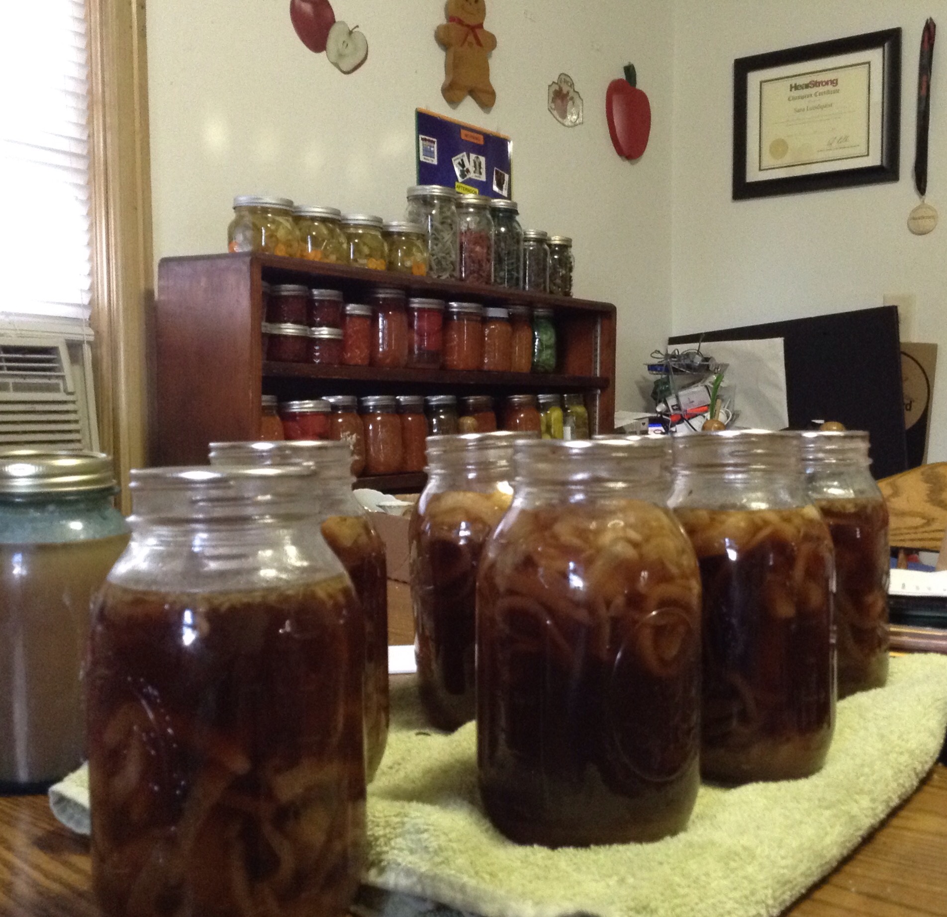 Seeing my cupboards and my shelf brings great pride. That is a lot of hard work. A lot of love and determination. It is as if I feel my grandmothers hand leading me downstairs to take in the awe of the fruit room.