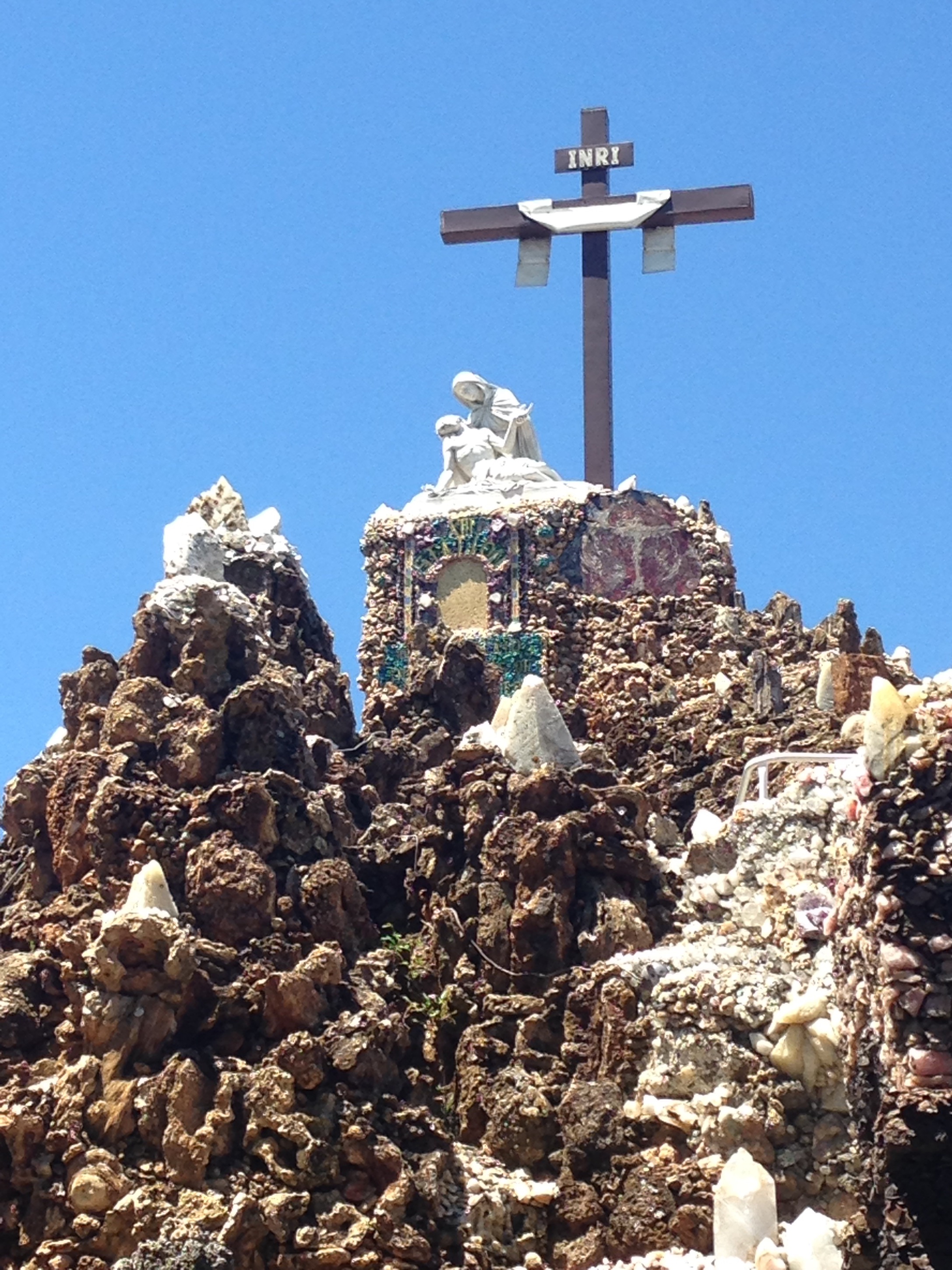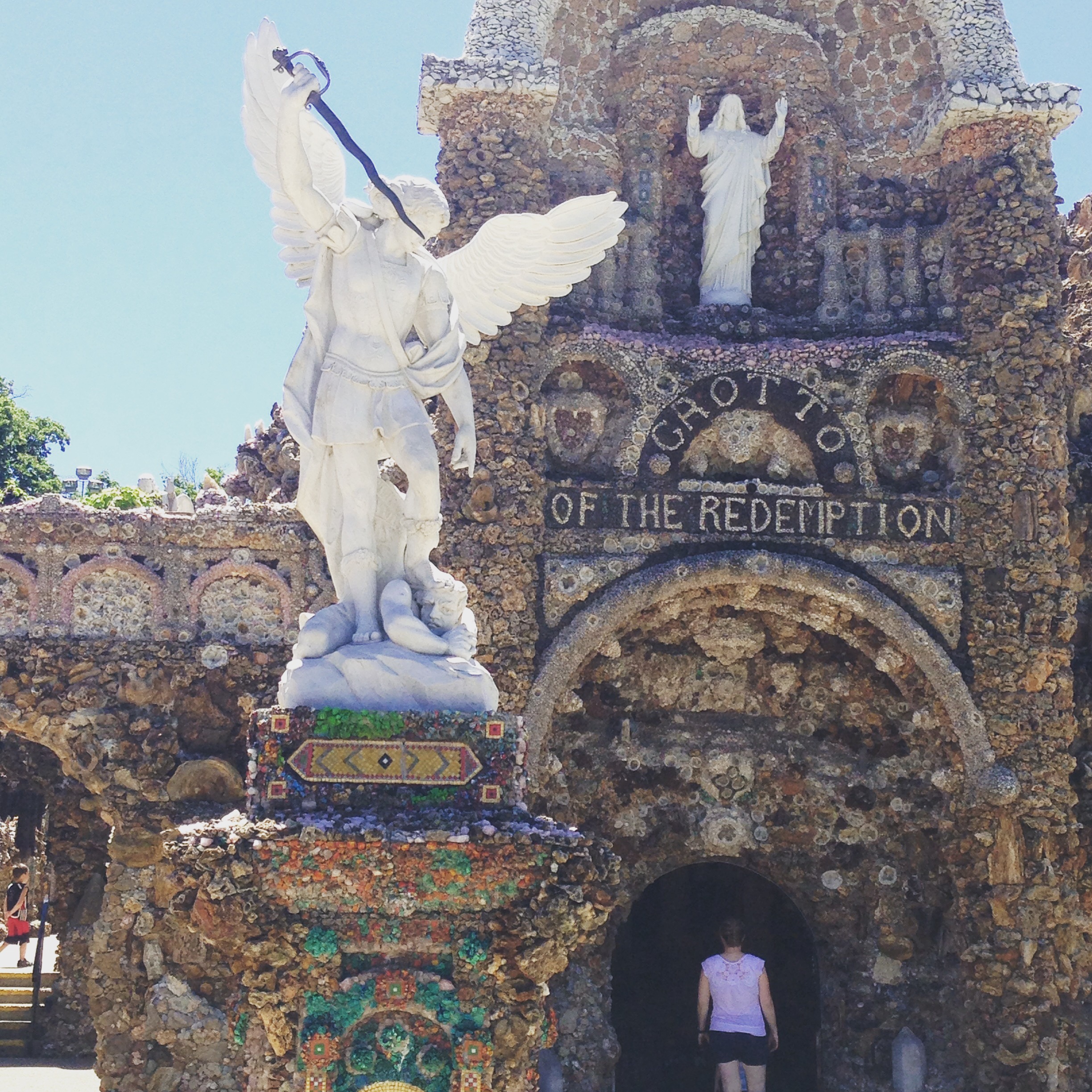 From our short stop in New Ulm we headed south and crossed into Iowa. We entered into the small town of West Bend. Our destination was the Grotto of The Redemption. It was like an oasis in a desert. Here is this little town, kinda run down and dusty. Turn a corner and bam there is this beautiful beyond words castle of rocks and gems.