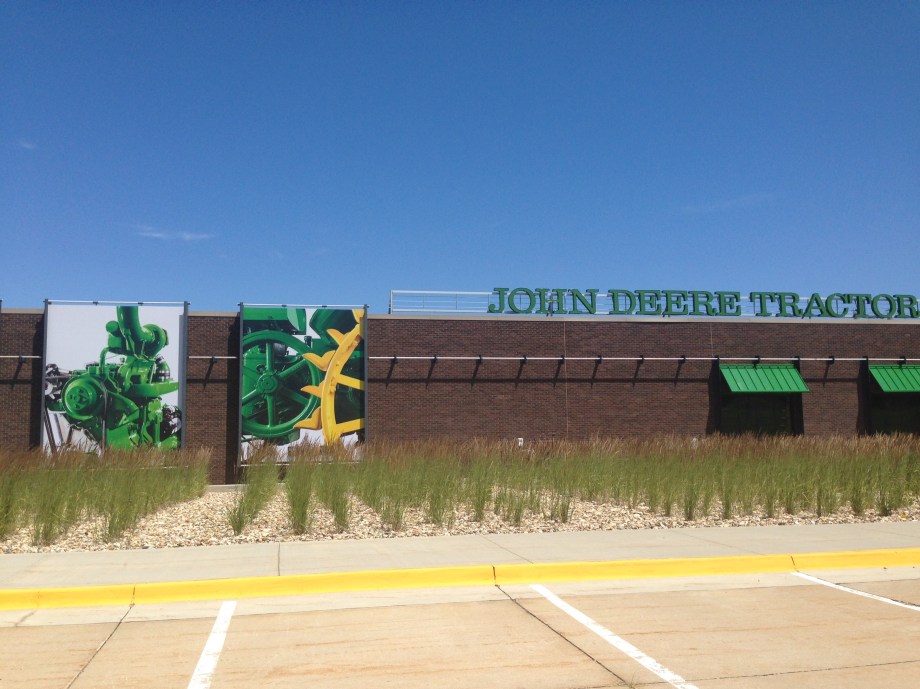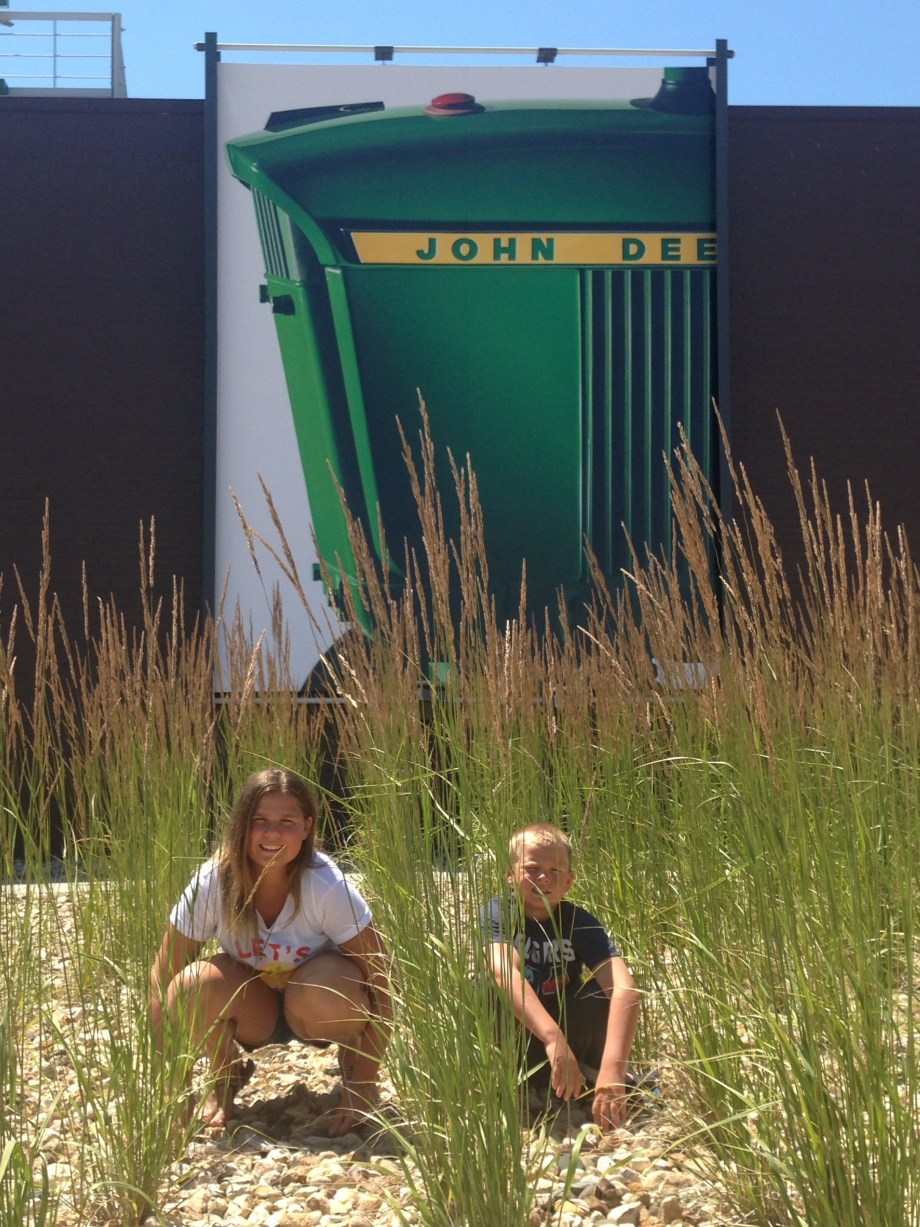 We are efficient travelers. I think we were up, ate breakfast and packed ready to go by 8:45am each and every morning. We left Fort Dodge and we headed towards Waterloo. Our destination in Waterloo was the John Deere Factory. We knew the museum was closed on Mondays but there were a couple people in our van that still wanted to see it. We got to Waterloo found the factory and drove slowly around the plant. We also found there were tractors outside we could visit.